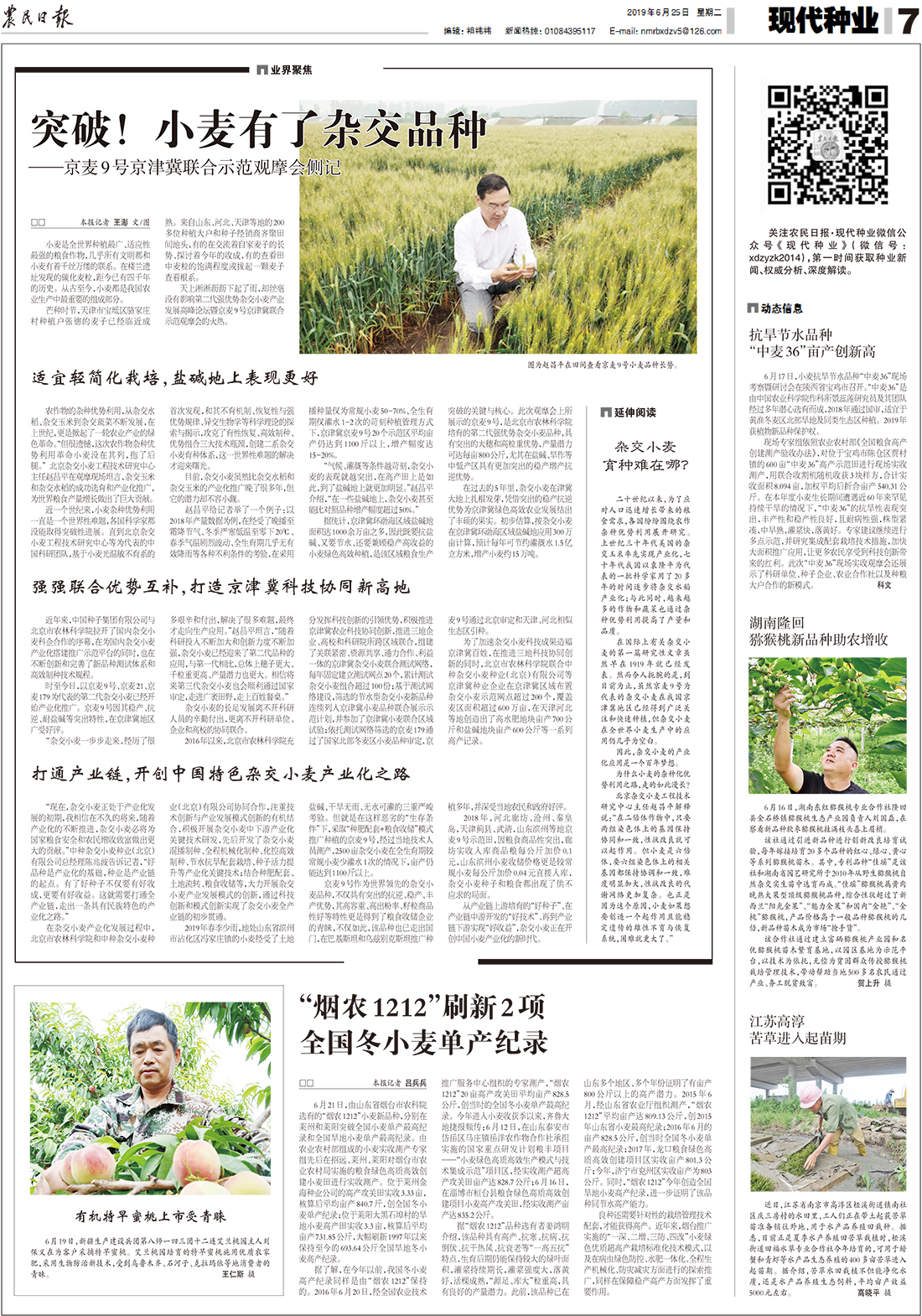 攜手并進(jìn) 勇攀種業(yè)高峰-- 京麥9號(hào)領(lǐng)航雜交小麥產(chǎn)業(yè)化